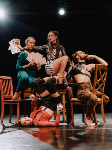 “I would put my new work in a dance theater category with modern roots like hip-hop and house dancing weaved into a modern style,” Billig said. “The set design resembles Cowboy Bebop as well as bars in Budapest where they had turned ruined buildings into bars and clubs that were these eclectic mixes of things and furniture.