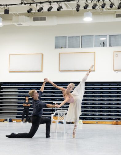 Brooks Landegger and Dawn Atkins rehearsing “A Midsummer Night’s Dream” being performed as this season’s Miami City Ballet opener. Choreography by George Balanchine © The George Balanchine Trust. (Photo courtesy of Alexander Iziliaev/Miami City Ballet)