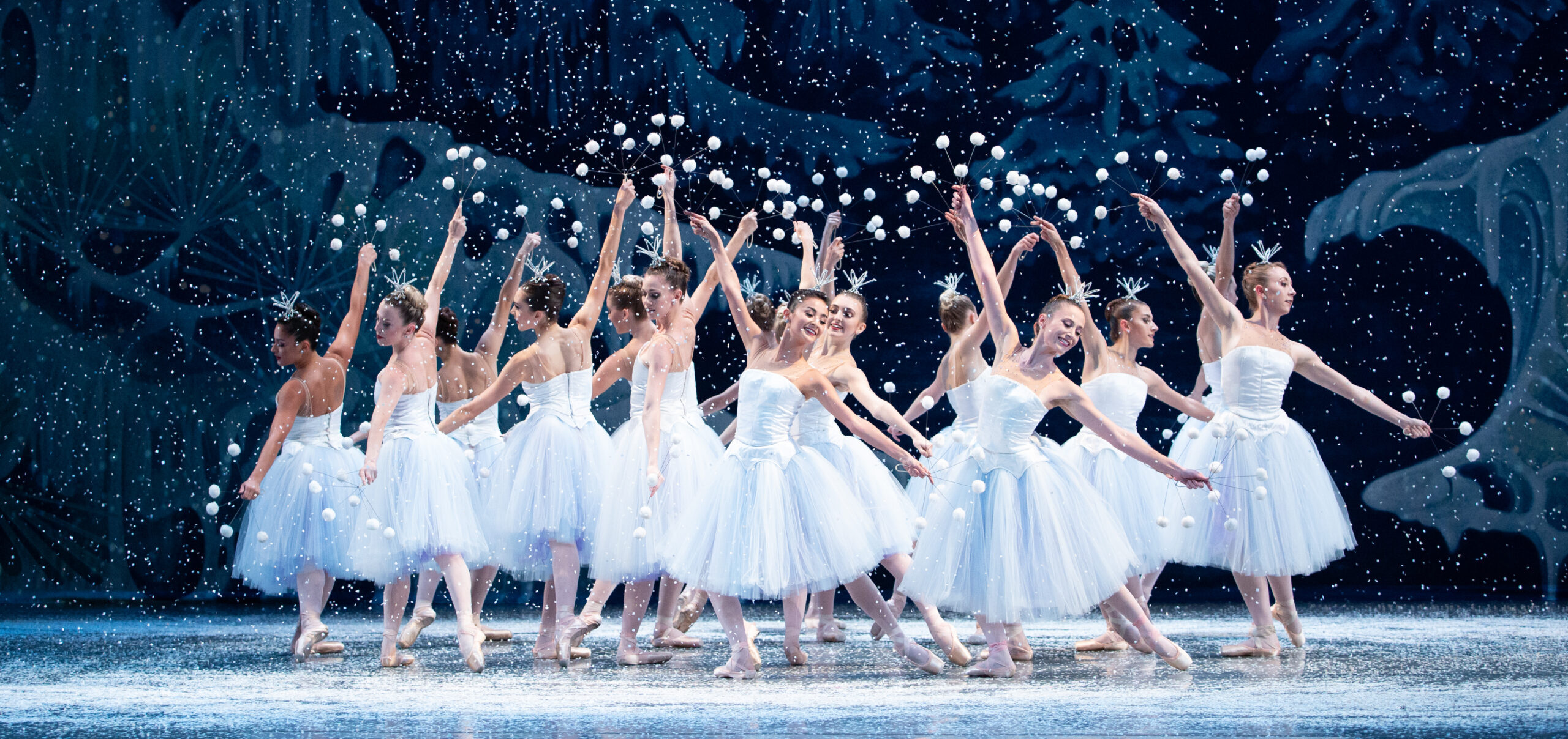 For the current production, Albertson is also coaching the snow scene, which closes Act One and signals the fantasy to follow. Not that there’s any shortage of hocus-pocus in the previous sections, which include a Christmas tree growing into a colossus, toys battling comically menacing mice, and the mysterious Drosselmeier, who not only fixes a broken nutcracker but devises transforming it into a prince to gladden Marie’s heart.