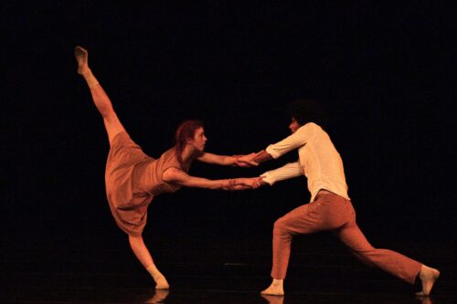 Washington Ballet dancers Katherine Barkman and Jorge Oscar Sanchez strike an arabesque penché. (Photo courtesy of Simon Soong)
