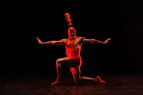 Also integral is Juraj Kojš’ sound design, which brings us the dancers’ voices, their breathing, their inchoate noises, almost as if we were inside their heads. Chaplin Tyler’s fantastical, intricate costumes, in brilliant red or pale flesh tones, incorporate billowing clouds of fabric, body-hugging lace rosettes or filmy sheaths, wisps of feather. Mai Lan Lau also gets credit for styling. Hair and makeup designer Angel Torres splashes their faces and bodies with iridescent gold and red. The effect is to turn the dancers into hallucinatory, very faintly birdlike creatures.