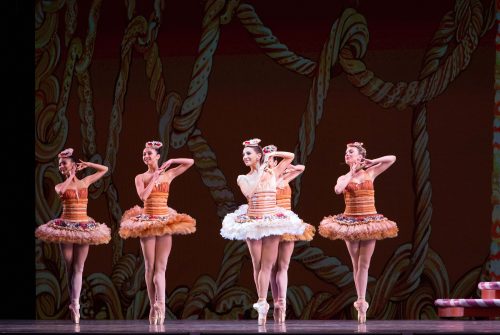 Other highlights in Act II included the over-the-top exuberance that principals Lauren Fadeley as Hot Chocolate and Alexander Peters as Candy Cane brought to their respective roles. Emily Bromberg showed heroic attention to musicality throughout the contortions of the “Dance of Coffee.” Marzipan Shepherdesses Ashley Knox, Julia Cinquemani, Nina Fernandes, Suzette Logue and Helen Ruiz coordinated flawlessly throughout the intricate choreography’s slight, unforgiving shifts of weight, and principal Nathalia Arja as Dewdrop recalled her spectacular performance from last spring’s “Firebird” with the accuracy, speed and precision of her pointe work.