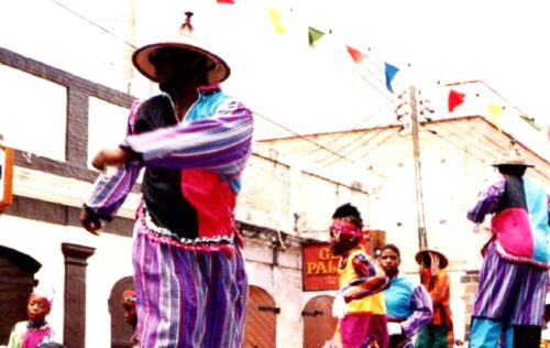 The stilt tradition “is from parts of Guinea, Liberia and Ivory Coast . . . and goes back centuries,” explains Aziz. “But there’s symbolism in the mask performances that changed in the diaspora. West Africans went to many different places and took some of these traditions. But of course, these traditions initially were stripped away, just like our name, especially anything that dealt with spiritual references.”