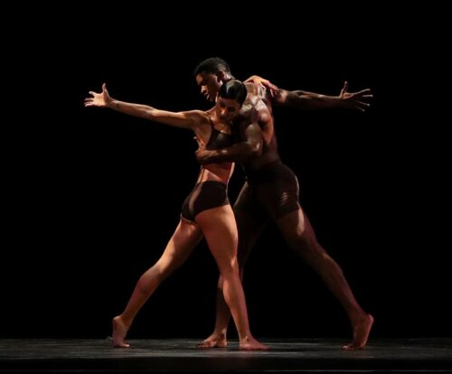 Dancers Cristiana Cavallo and Ricardo G. Barret, from Jon Lehrer Dance Company, in Jon Lehrer’s “Here in Eden.” (Photo by Kiesha Stephens, courtesy of Dance NOW! Miami)
