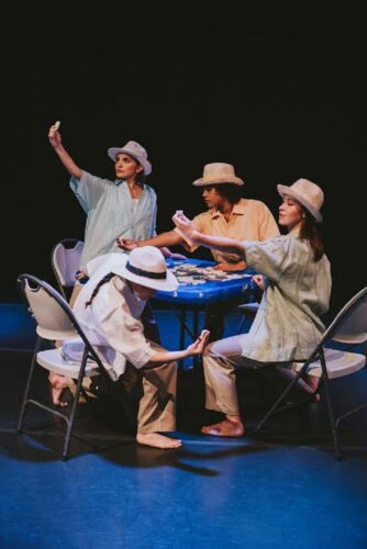 In “Manteca,” Cecilia Benitez, Stephanie Perez, Scarlett G. Quinto, and Maytte Subirana-Albarellos, play the game through dance in an homage to Cuban culture and tradition. (Photo courtesy of Maya Billig)