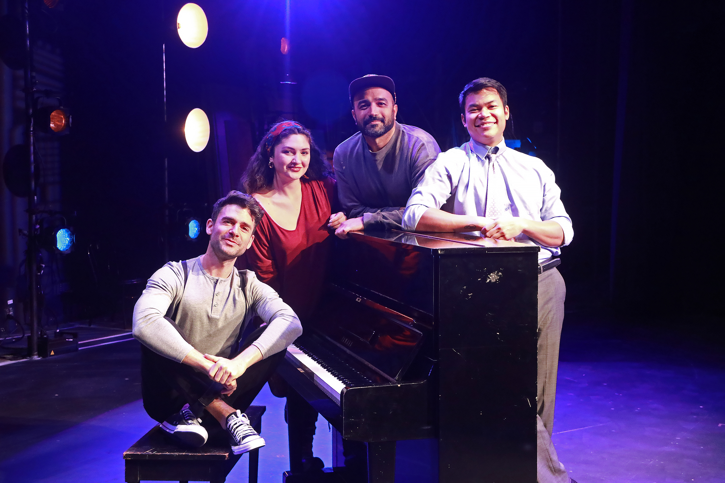 Adam Kantor (Jon), María Bilbao (Susan), Director Andy Señor Jr. and Nate Promkul (Michael) in rehearsals for “tick, tick . . . BOOM!” at Actors’ Playhouse at the Miracle Theatre. It runs from Friday, Nov. 15 through Sunday, Dec. 8. (Photo by Alberto Romeu)