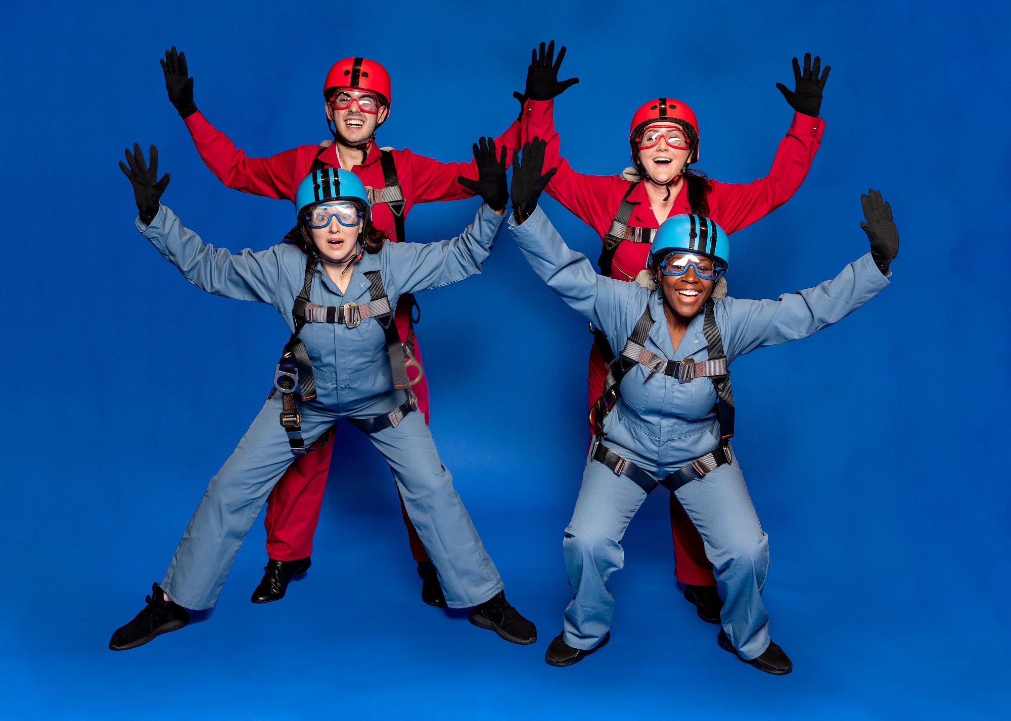 Daniel Llaca, Lindsey Corey, Stephon Duncan, and Diana Garle take a leap in City Theatre’s “Summer Shorts” through July 2 at the Adrienne Arsht Center. (Photo courtesy of Morgan Sophia Photography)