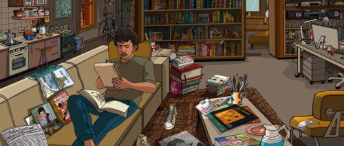 An artist whose work and interests reaches across media and disciplines —from furniture design and graphic design, to painting, sculpture, illustration, and animation, Mariscal’s eye for detail makes you forget that while you are hearing the real voices of the people being interviewed, what you are seeing is artwork.