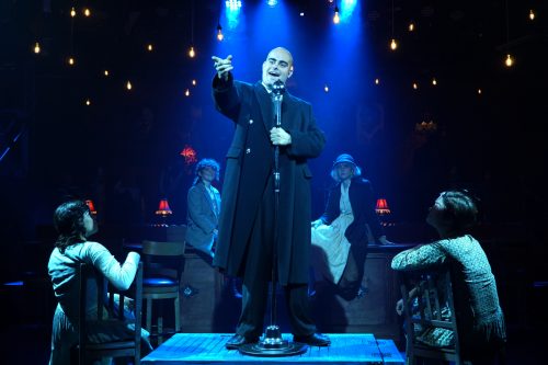Four fine musicians – musical director-pianist Rick Kaydas, violinist Tony Seepersad, percussionist Ryan Hecker and reed player Frank Capoferri – are perched on the bandstand behind the bar, warming up for the show by accompanying different actors who croon preshow tunes.