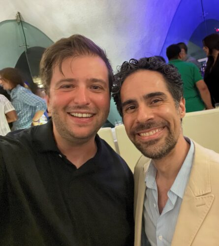 Emmanuel Schvartzman, a graduate of Coral Reef Senior High School and FIU, has been the music director on the tour of “Hamilton” since 2019. Here he’s shown with fellow Miamian Alex Lacamoire. (Photo courtesy of the production)