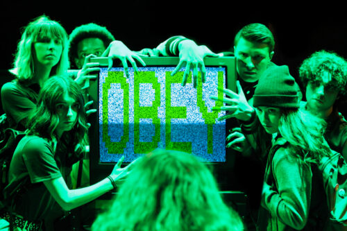 The cast of Area Stage’s “Be More Chill” sport a green Mountain Dew vibe in the Arsht Center production. (Photo/Kyla Stewart)