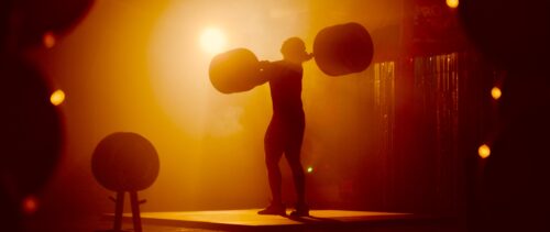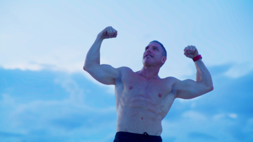 A scene from the movie “Puffing Iron” with actor Omar F. Cordero as Arnold. (Photo courtesy of Miami Dade College’s 41st Miami Film Festival)