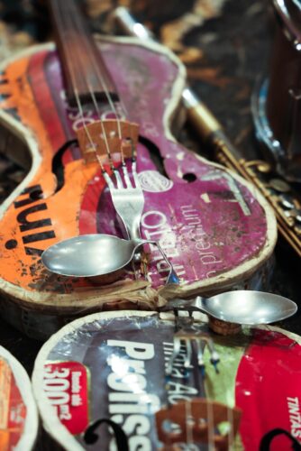 Instruments created from trash played by the Recycled Orchestra of Cateura, Paraguay. (Photo by Jose “Chepe” DeVillegas, courtesy of Estefan Enterprises, Inc.)