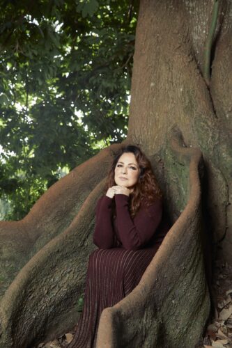 Gloria Estefan shown during a shoot for her first Spanish-language album in 18 years, “Raíces” (Roots) at Fairchild Tropical Garden. She’s working on a new musical with her daughter, Emily, and stars as Grandma Gigi in the DreamWorks movie “Gabby’s Dollhouse,” which opens Friday. (Photo by Gato Rivero, courtesy Estefan Enterprises, Inc.)