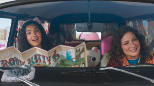 “Gabby’s Dollhouse: The Movie” stars Laila Lockhart Kraner, left, reprising her role from the beloved small screen series and Gloria Estefan as Grandma Gigi as they travel to the urban wonderland of Cat Francisco. The film opens Friday, Sept. 26. (Photo courtesy of DreamWorks)