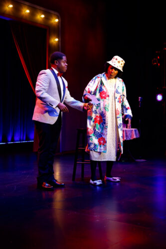 Elijah Thomas is Moms Mabley’s (Barbie Lazaro) onstage sidekick. (Photo by Seven Fleurimond, Studio 7 Miami)
