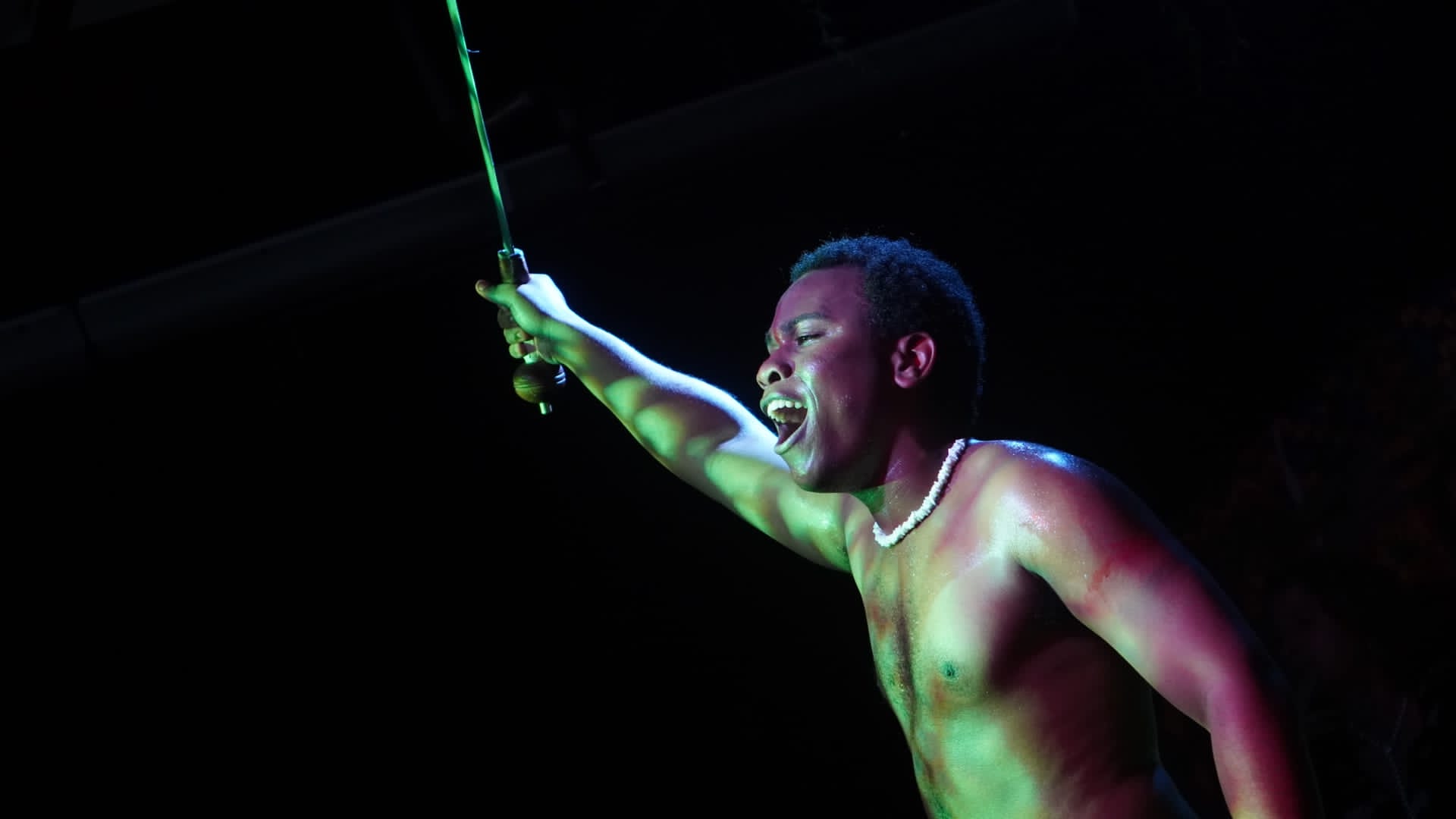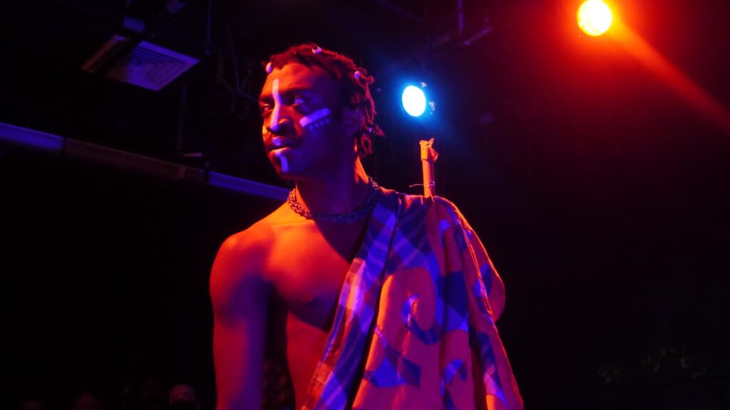 Justin Cook As Kumi in ‘OSKUNERU 2025: A Theatrical Journey Through the History of the Surinamese Maroons.’ (Photo courtesy of Elijah Pestatna )