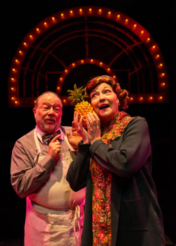 Real-life husband and wife Avi Hoffman and Laura Turnbull wax poetic on a pineapple in the song “It Couldn’t Please Me More.” (Photo by Justin Namon)