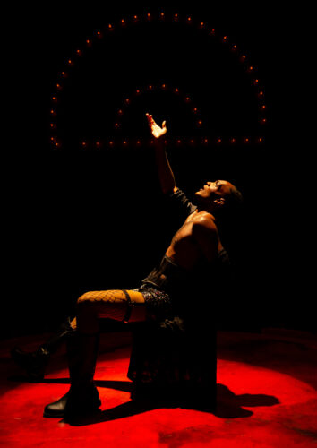 Elijah Word as the Emcee sings the wrenchingly beautiful “I Don’t Care Much” in Zoetic Stage’s “Cabaret” at the Adrienne Arsht Center. (Photo courtesy of Justin Namon)
