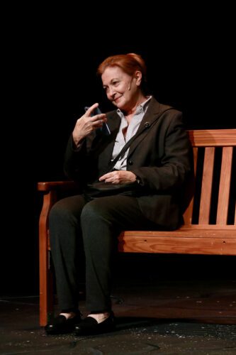The playwright gives his main character the best lines and Cummings is the most developed character leaving others a bit thin. We could learn more about 30-year-old daughter Olive (Mallory Newbrough) – yes, she hasn’t followed in the footsteps of her mother, she’s visiting the house she grew up in, living somewhere else getting a Ph.D., in English literature. She’s come back home because she’s noticed a change in her mother while on the phone with her and concerned about a fender bender where Mom rear-ended another car. But Olive is more or less a sidecar for the main character’s story. To be clear, it’s a small place for improvement and doesn’t upset the balance of the play.