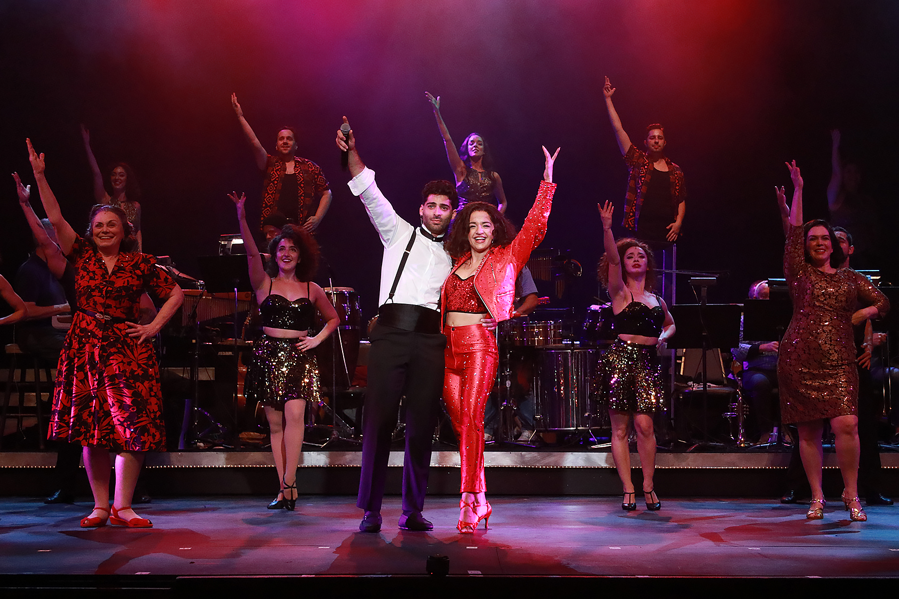 The Hialeah-raised Canela has so far built his career in film and television, yet despite his newcomer status, he seems equally at home onstage – commanding, even. He’s a fine dancer, an even better pop singer (crooning “I See Your Smile,” “Here We Are” and “Coming out of the Dark” with Yanez, a pained “Don’t Wanna Lose You” and, with Eileen Faxas as Gloria Fajardo, “If I Never Got to Tell You”) and an absolutely charismatic actor.