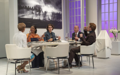 Though the evening begins with sophisticated banter and lots of bubbly, it soon disintegrates as microaggressions, clueless mistakes and Alex’s ongoing rebellion against his “woke” parents come into play.
