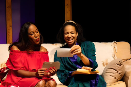 May (Carey Brianna Hart), right, shows her friend Rosa (Dina Lewis) pictures from the past. (Photo courtesy of Chasity Hart)
