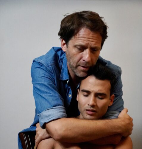 The audience has to feel the tension between the demanding David and the panicked Justin, but it also needs to surrender to the storytelling and attempts at connection when the men share some gentler moments or talk about their histories – Justin’s as a teen whose attachment to older guys began with a teacher and a friend’s father, David’s as a married man who concealed his sexual orientation and fathered a deeply troubled son.