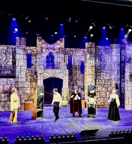Scenic designers Pedro Balmaseda and Jorge Noa created a spooky, cavernous castle that creates atmosphere on stage at the Colony Theatre, Miami Beach, in Loxen Entertainment’s “Young Frankenstein.” (Photo courtesy of Loxen Productions)