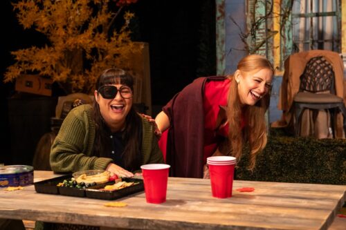 Joline Mujica as Ursula and Mallory Newbrough as Cailtin share drinks and a laugh in Zoetic Stage’s “The Comeuppance.” (Photo by Morgan Sophia Photography, courtesy Adrienne Arsht Center)