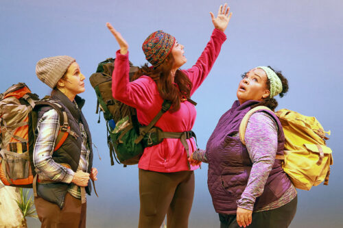 Three women head to the top of a mountain to tribute their newly deceased friend in “Step By Step” at Actors’ Playhouse at the Miracle Theatre in Coral Gables. The show stars South Florida professional actors Elizabeth Price, Anna Lise Jensen, and Kareema Khouri. (Photo by Alberto Romeu, courtesy of Actors’ Playhouse)