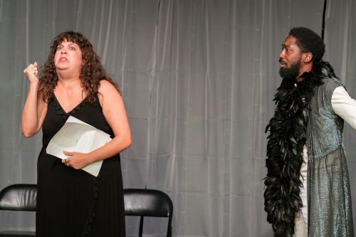 Chasity Hart is Titania and Matthew Salas plays a character known only as the Director in Main Street Players’ “Shakespeare Is a White Supremacist.” (Photo courtesy of Olimac Media)