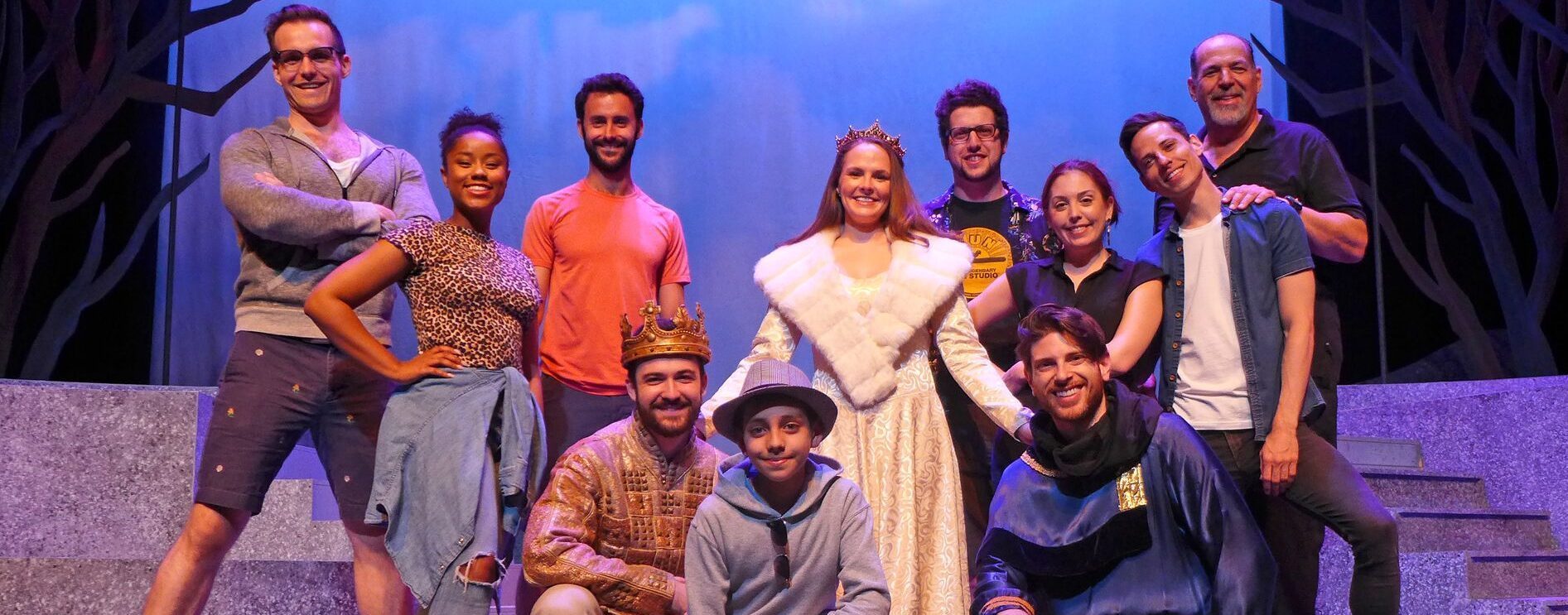 The cast of the Actors’ Playhouse production of “Camelot” posed with director David Arisco (top right) on the set before the show was put on hold. (Photo courtesy of Brook Noble)