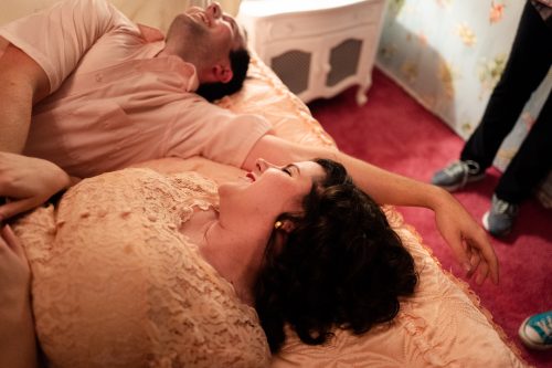 Real-life spouses Robert Fritz and Amy Coker played honeymooners in Juggerknot Theatre’s “Miami Motel Stories: North Beach.” (Photo courtesy of Daniella Mia)
