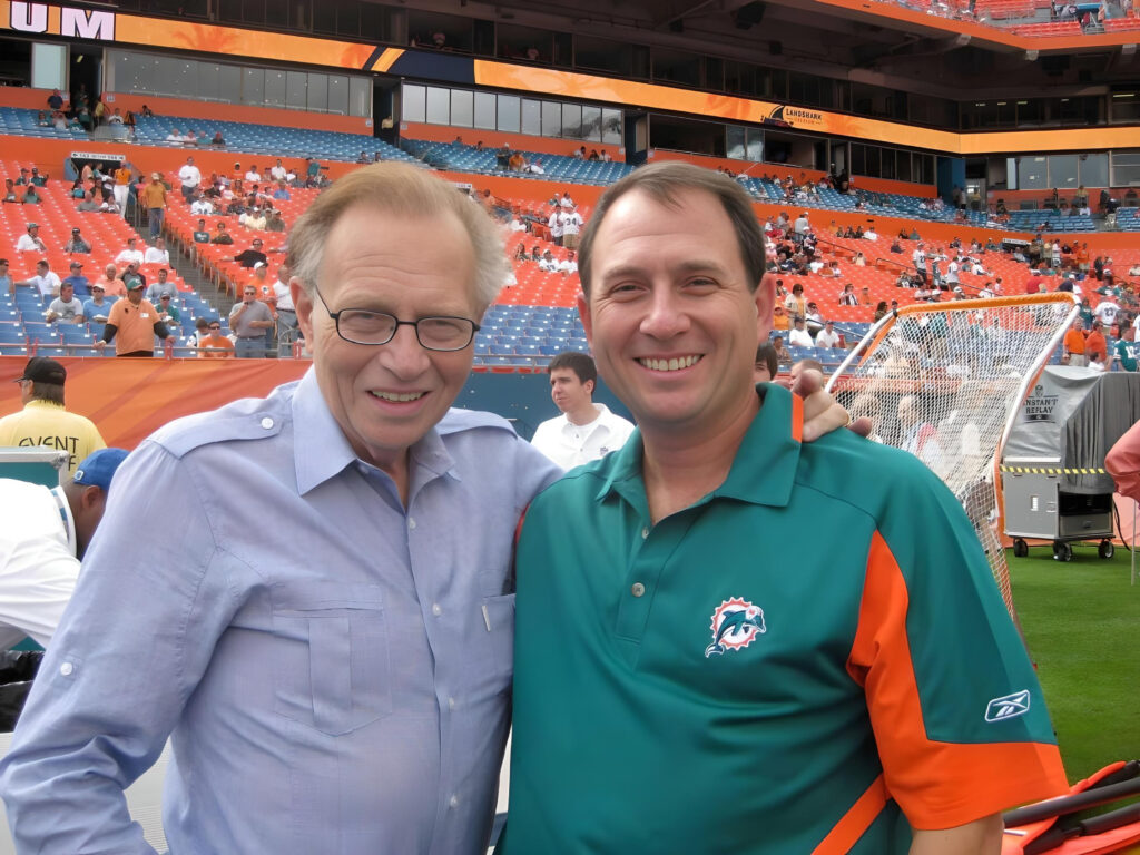 Larry King Jr. would listen to his father Larry King in the broadcast booth at the Miami Dolphins game on a transistor radio. In the film “When Larry Met Larry,” King’s son tells about when the two went to a game together. (Photo courtesy of the Miami Jewish Film Festival)