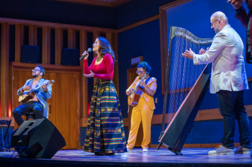 The company’s second world premiere collaboration with Venezuelan-Canadian director Juan Souki (after 2019’s “Viva La Parranda!”) celebrates the talents and stories of five musicians who have become part of the Venezuelan diaspora.  It is quite different from “Viva La Parranda!,” a folkloric exploration of village culture, music traditions, and cuisine that Souki crafted with performer Betsayda Machado.