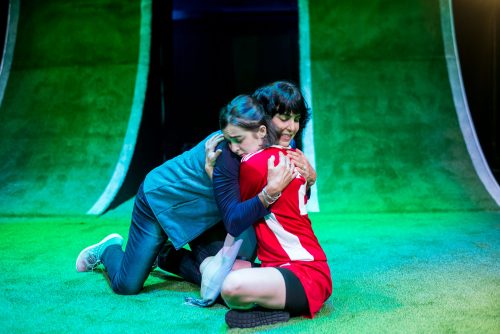 Elena Maria Garcia and Lisa Naso come together in grief in “The Wolves” at the Arsht Center. (Photo courtesy of Justin Namon)