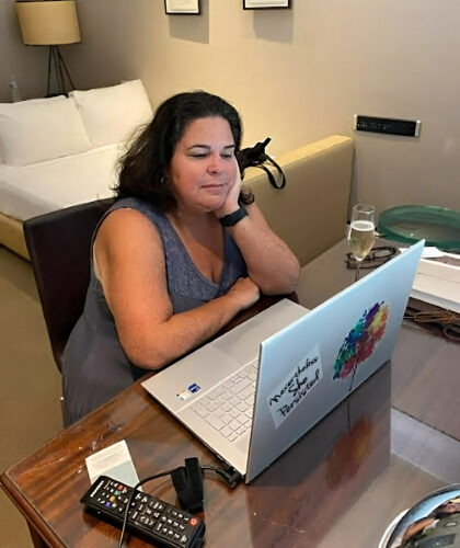 Caridad Moro-Gronlier in The Betsy Hotel’s Writer’s Room. Moro-Gronlier is the curator and a writer in residence at this year’s Escribe/Aqui Write Here. (Photo courtesy of The Betsy Hotel)