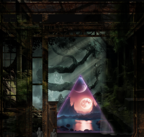 Buchman’s young characters cross over from the modern world they inhabit to recreate the original fable. “If you’re familiar with these types of games, essentially everything unfolds within the players’ imaginations. They’re collaboratively creating a story as they embark on these epic quests. As they play, the warehouse setting begins to transform—you see a dragon appearing in the space, an eye blinking just outside the warehouse window,” describes Buchman.
