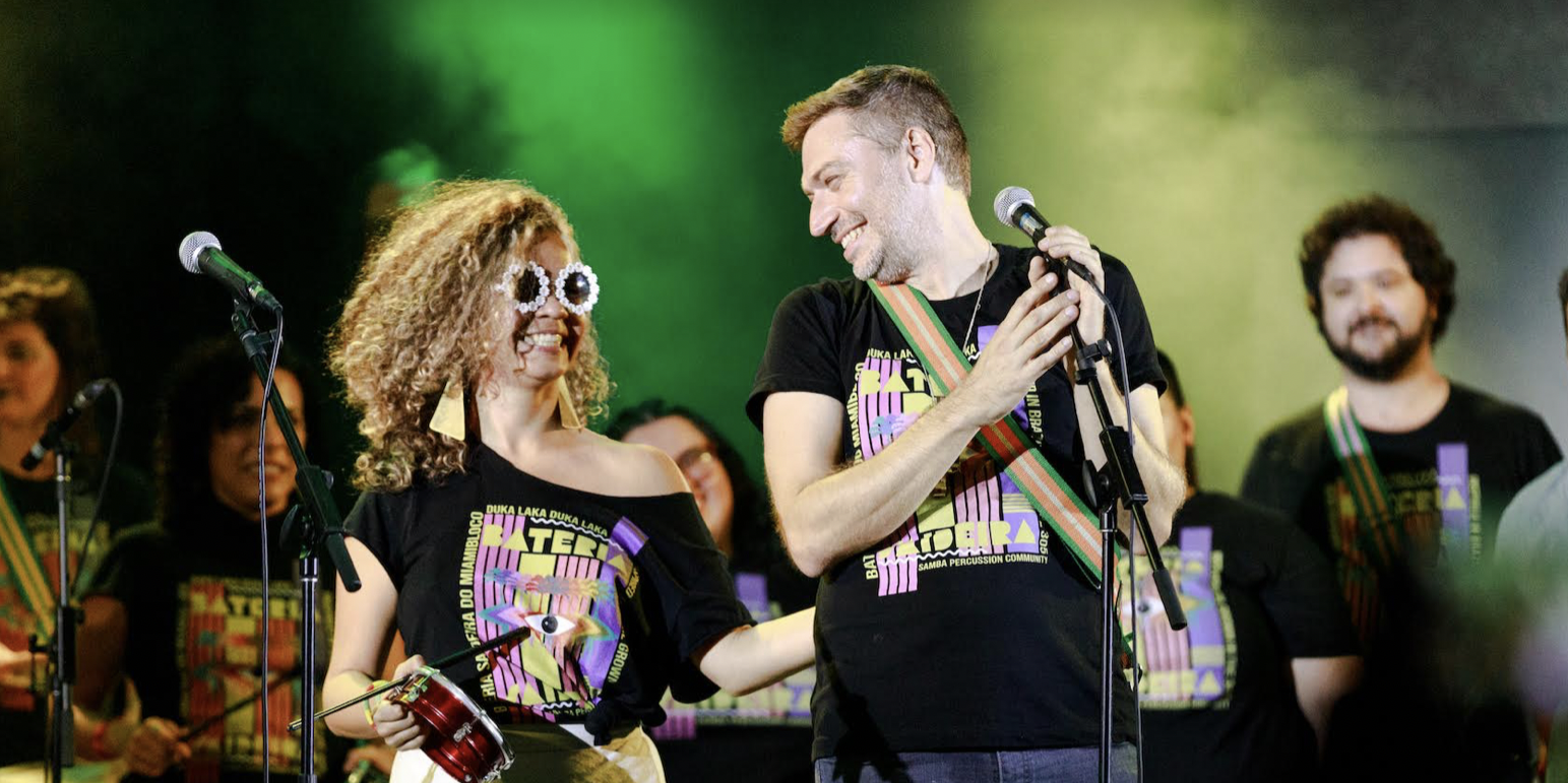 In the bloco, trained and amateur musicians play side by side. Those new to musical performance not only learn to play the instruments and patterns of samba but how to work together as an ensemble. Call it community-building — with a groove.