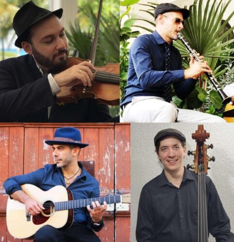 5 String Swing, led by Grammy-winning violinist Steffen Zeichner, pictured top left, will perform July 6. Clockwise are Ziechner, Flexter Henderson, Benjamin Whitman and Greg Diamond. (Photo courtesy of Community Arts Program)