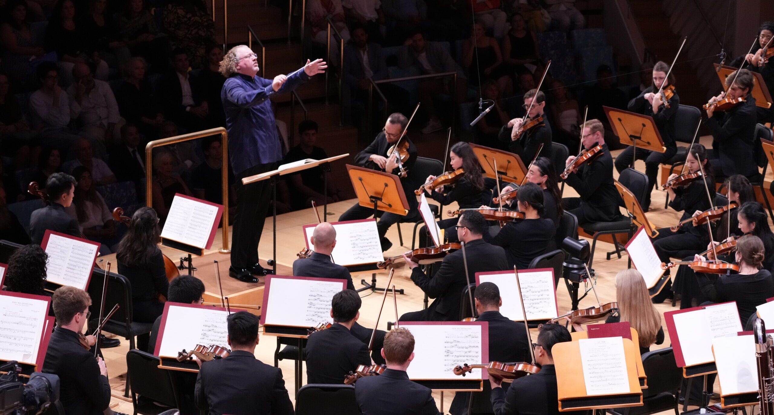 “Coming to see the orchestra isn’t supposed to be mystifying,” he says. Whether someone is inside the hall or outside on the lawn taking in the music, he wants his audiences to know that “you can come with whatever knowledge you have about the music. I’m always sad when people go to a museum, and they are worried that they don’t know what to say about the art. The purpose is to create something that interacts with you – making you at ease to discover. Not ‘What should I think? What should I say?’ ”