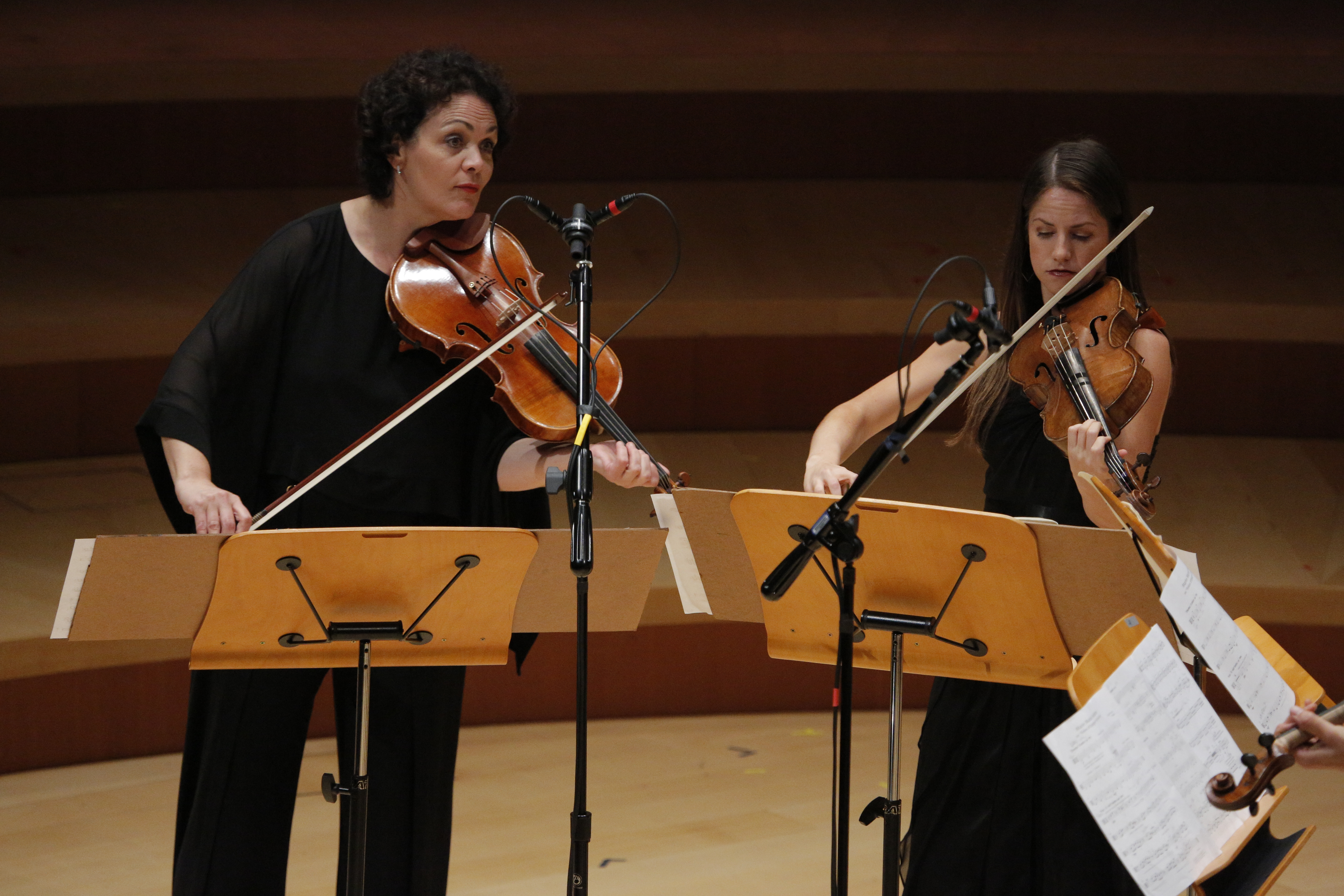 The evening’s third work was Garth Knox’s 2007 (revised 2010) “Marin Marais Variations on “Les folies d’Espagne”” for four violas. NWS Fellows Stephanie Block, Jessica Pasternak and Kip Riecken were joined by German soloist, Tabea Zimmerman.