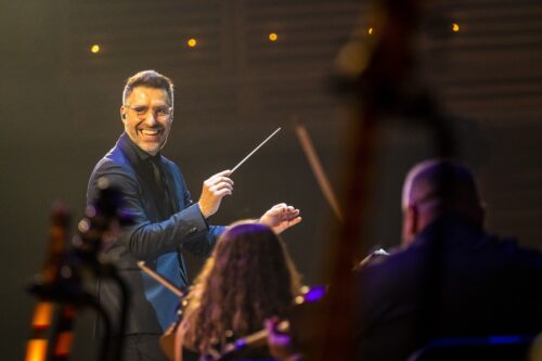 Miami-native Jacomo Bairos conducts Nu Deco Ensemble in April of 2023 at the North Beach Bandshell. Nu Deco opens its ninth season Saturday, Oct. 21 at New World Center. (Photo courtesy of Alex Markow)