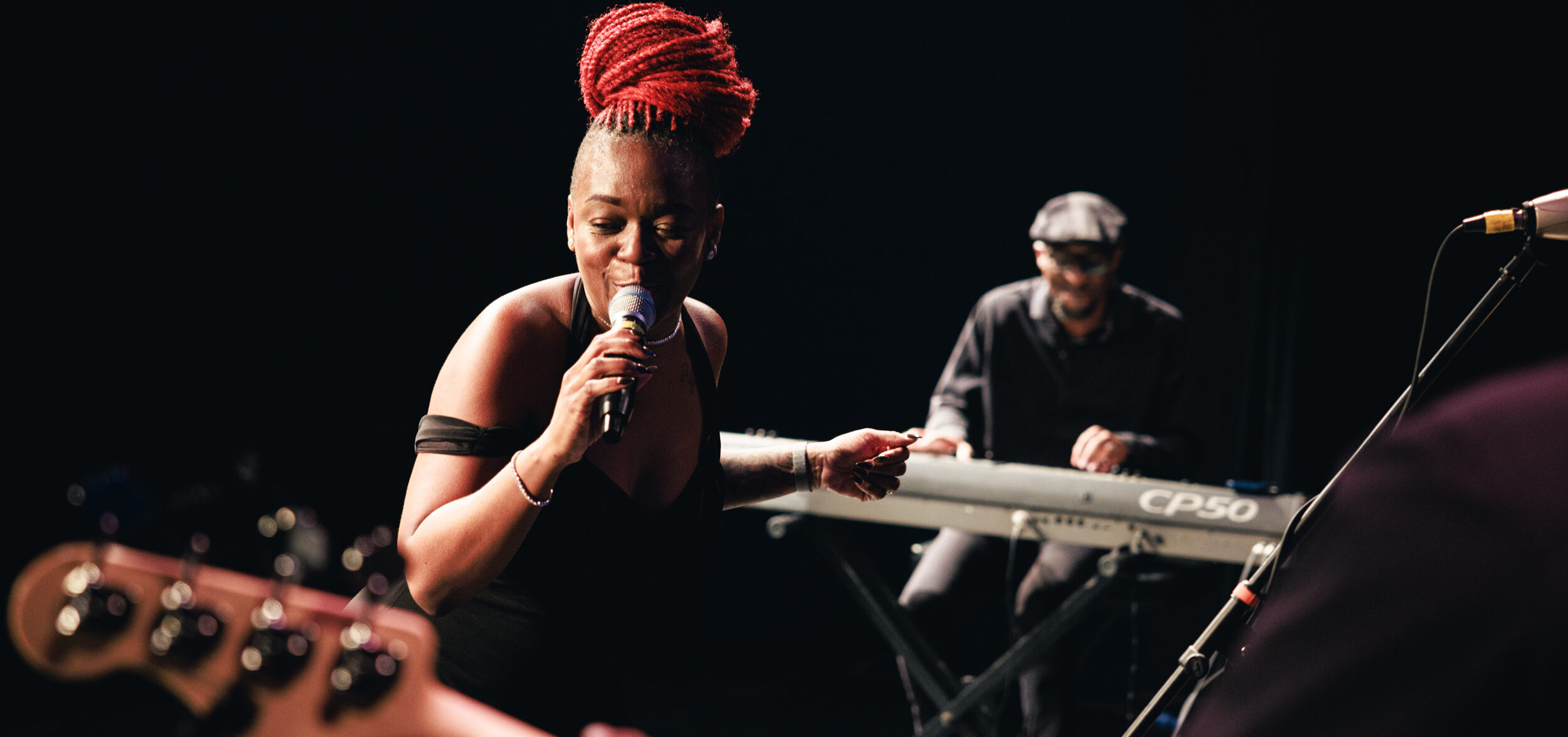 Friday night was designed as a “world” night. In addition to Latin jazz from Calle and his backing band, most of whom were originally from Venezuela, the night featured Haitian-American jazz vocalist LaVie. The singer, performing barefoot with a bold red updo hairstyle, ran through a series of impressive covers, ranging from standards like “Fly Me To The Moon” and Nina Simone’s “My Baby Just Cares For Me” to new pop classics like “Sweetest Taboo” from Sade and a Haitian compas-inflected take on Rihanna’s “Don’t Stop The Music.” LaVie captivated the crowd with a playful stage presence reminiscent of Janelle Monae, while her backing band delivered a hip-hop inflected style similar to Robert Glasper, the Roots, and other contemporary jazz.
