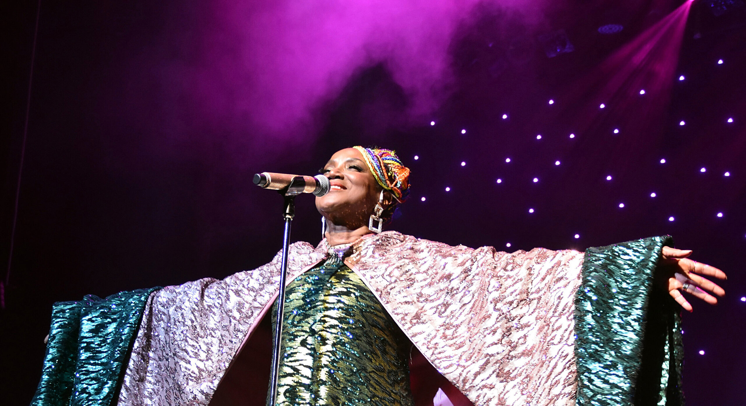 Spanish-Cuban singer Lucrecia, seen performing at Hostos Center for the Performing Arts, New York, will bring the legendary Celia Cruz to life, performing alongside the Celia Cruz All-Stars in three tribute concerts at the historic Banyan Bowl on Jan. 31, Feb. 1, and Feb. 2. (Photo courtesy of Allen Spatz)