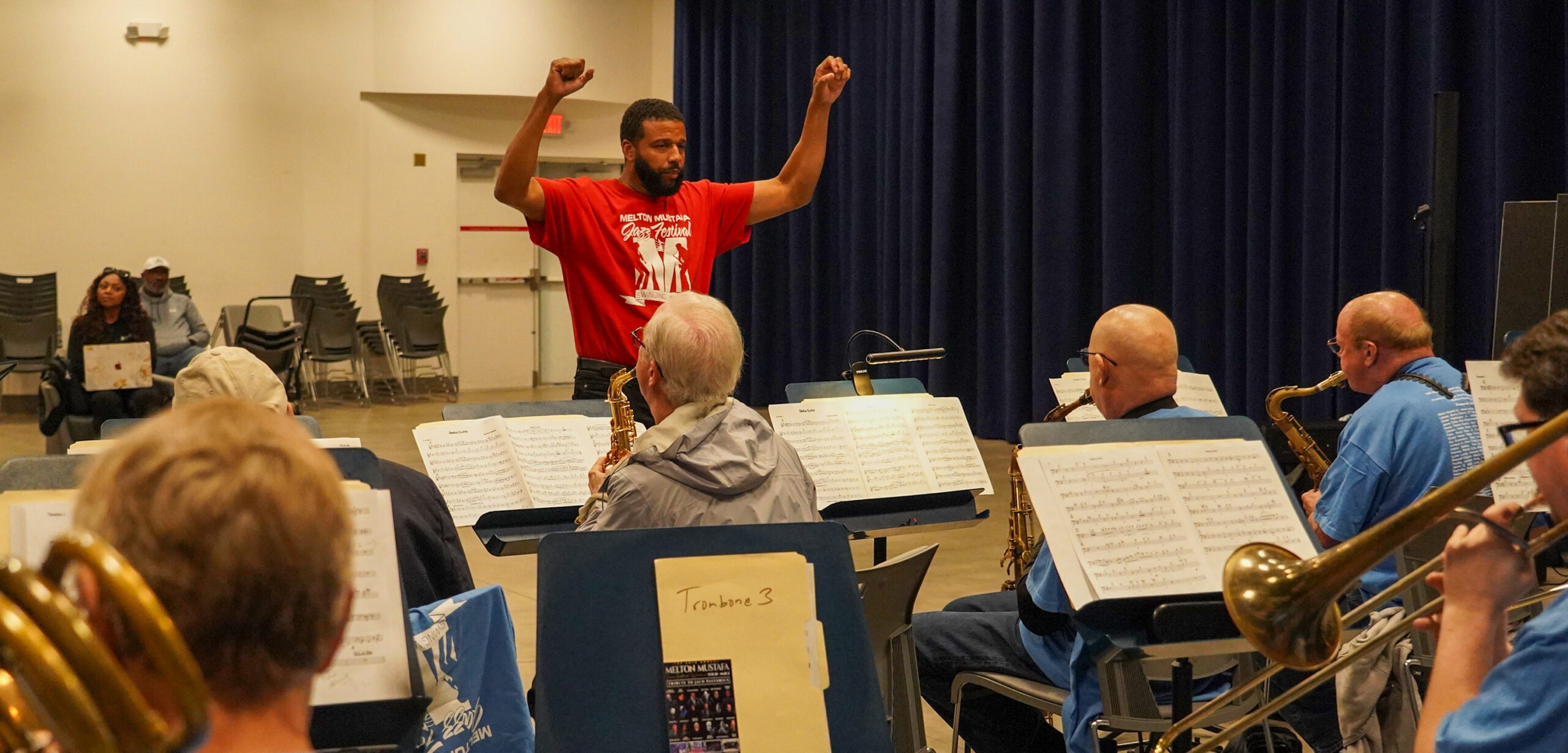 Melton Mustafa Jr. leads a rehearsal of the Melton Mustafa Orchestra at the Marshall Davis African Heritage Cultural Arts Center. (Photo by Jerome Louden/JML Photo Services)