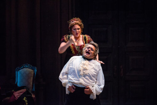 Todd Thomas as Scarpia in the 2014 production of Florida Grand Opera’s “Tosca” with soprano Kara Shay Thompson. (Photo courtesy of Justin Namon)