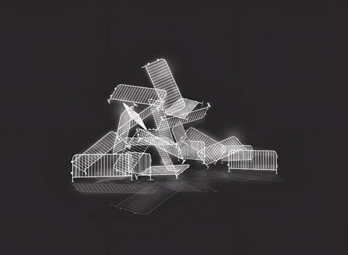 At the Faena Hotel Miami Beach (3201 Collins Ave.), the work is “Patria y Vida” by Antonia Wright and Ruben Millares, a large light sculpture using 18 metal barricades with LED lights bound together and arranged in a chaotic formation. The artists describe the site-specific installation as a celebration of people’s right to peacefully protest. The barricades are part of a series by the pair where they ponder the familiar barricade focusing on it as a symbol of resistance.