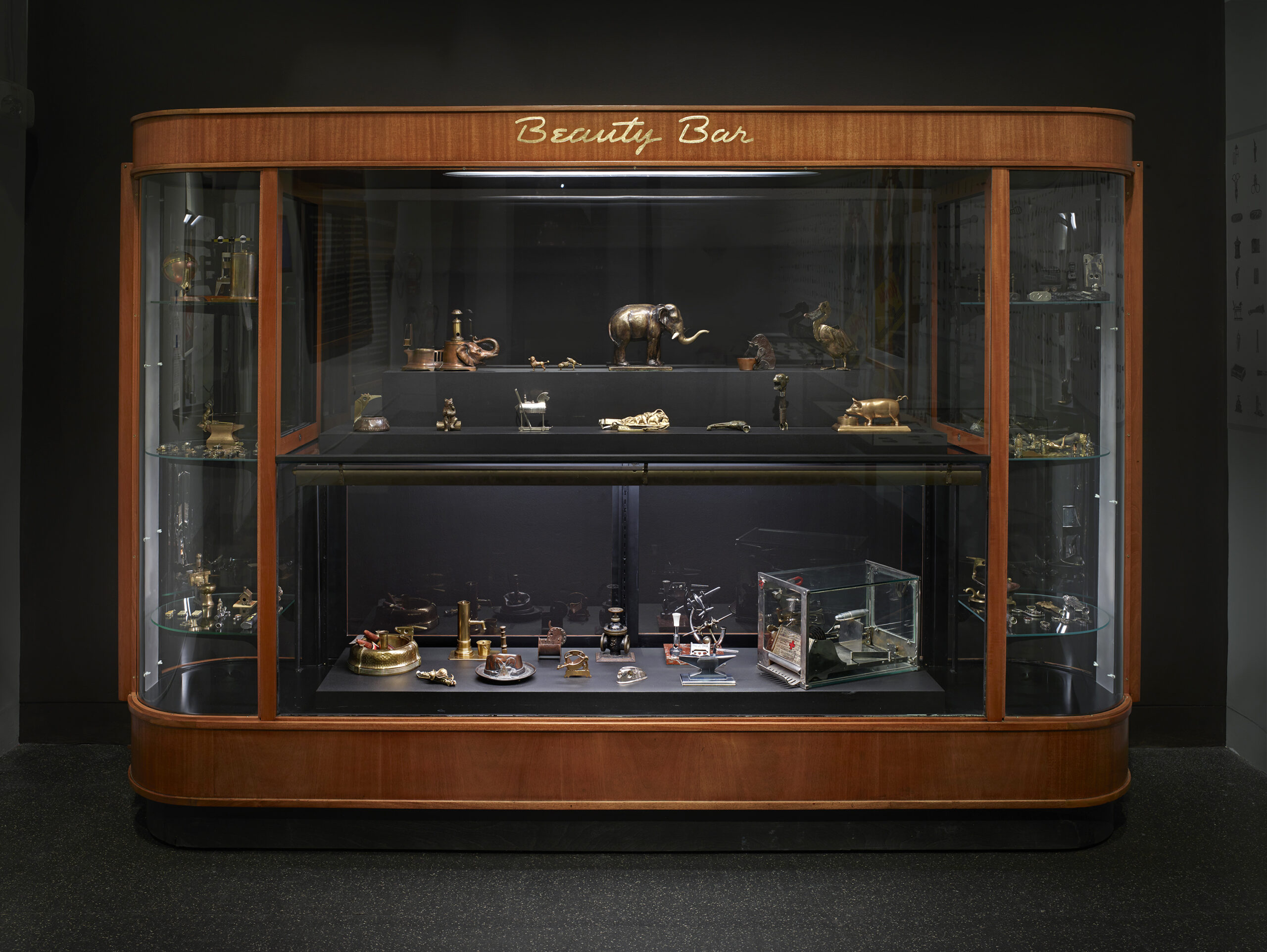 The Wolfsonian-FIU’s “Beauty Bar” cabinet is a perfect showcase for some of the more than 360 cigar cutters given to the Wolfsonian-FIU by Miami collector Richard Kronenberg. An exhibition, curated by Lea Nickless, titled “Smoke Signals: Cigar Cutters and Masculine Values” is at the Miami Beach museum through Sunday, Sept. 29. (Photo courtesy of the Wolfsonian-FIU)